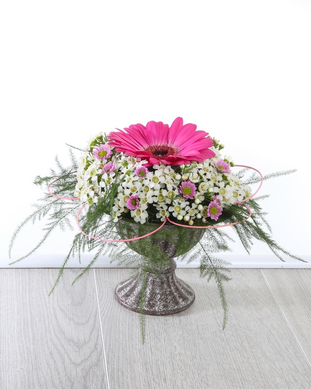 Perfect for any dinner party , this stunning arrangement includes a beautiful pink gerbera as the main feature