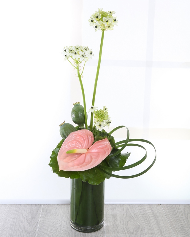 A beautiful and elegant arrangement, Xanthe includes Ornithogalum, Anthurium, Poppy heads and Lily Grass