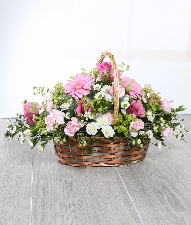 Our charming Beatrice basket is a tradtional favourite, full of the nations favourite blooms including Roses, Carnations and Chrysanthemum
